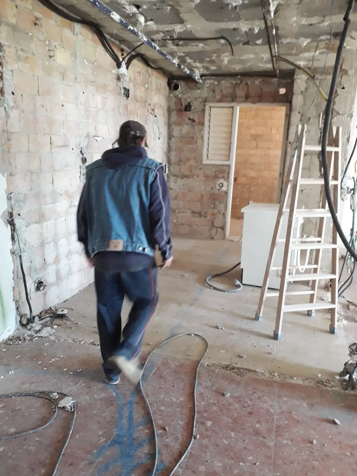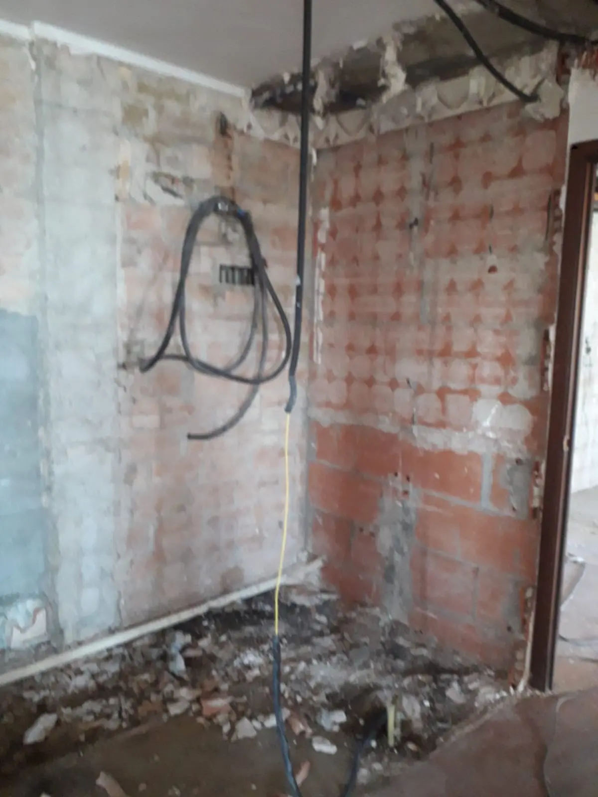 Fază intermediară în construcția unei clădiri noi sau într-o renovare majoră. Imaginile arată un gol de ușă într-un perete de zidărie din cărămidă eficientă (cu goluri), unde a fost montat tocul ușii. Se observă fixarea tocului și pregătirea pentru etapele următoare, cum ar fi aplicarea tencuielii sau montajul foaie de ușă.